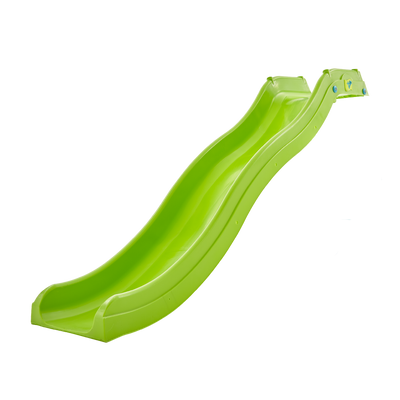 The Ripple 8ft/2.2m Slide Body1 by TP Toys is a green plastic wavy slide, shown from above on a white background—ideal for adding to climbing frames.