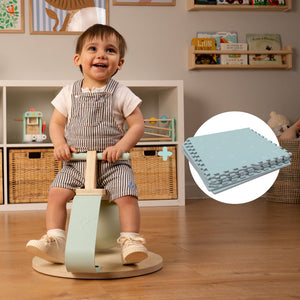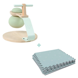 The TP Active-Tots Pikler Style Toddler Bouncer by TP Toys features a modern, minimalist wooden and pastel green design with a rounded base—an ideal addition to your nursery bouncer setup. FSC® certified for sustainability. The TP Toys TP Active-Tots Pikler Style Toddler Bouncer features a sturdy handle, soft inflatable seat, non-slip silicone feet, and a gentle bounce metal frame to support motor skill development in a safe, FSC® certified design.