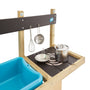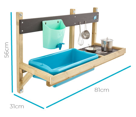 To give your children a real kitchen play experience the mud kitchen accessory comes with a working tap & sink! They can fill the water butt up & then use the tap to fill their play bowl, giving an authentic play experience!