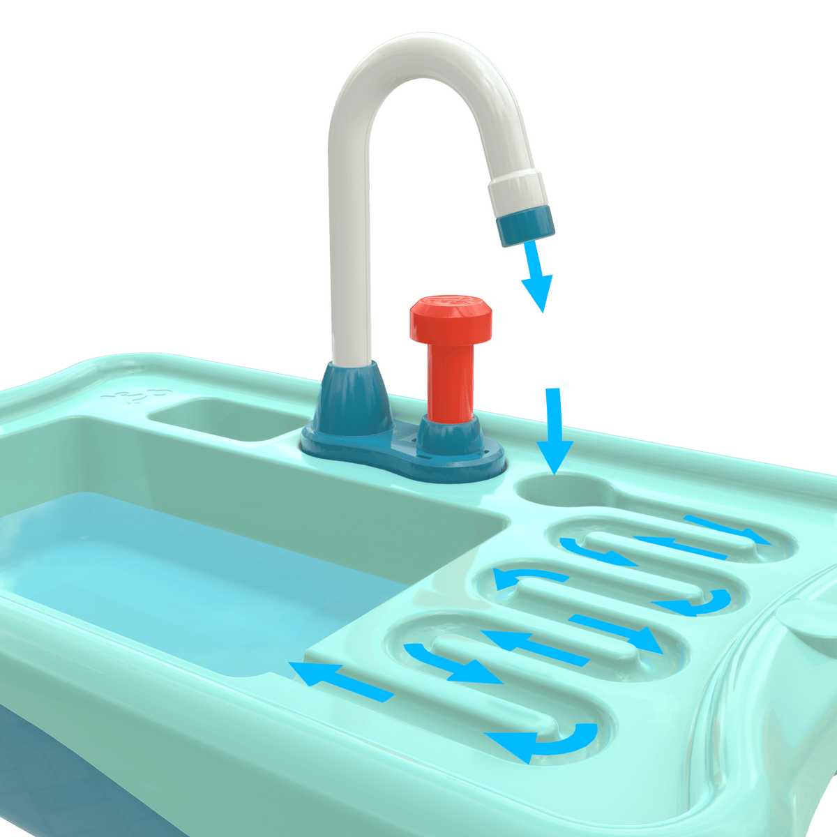 - Features working sink! Including the brand new TP Working Sink! Pump the button to get running water, rotate your spout and drain once you are done.