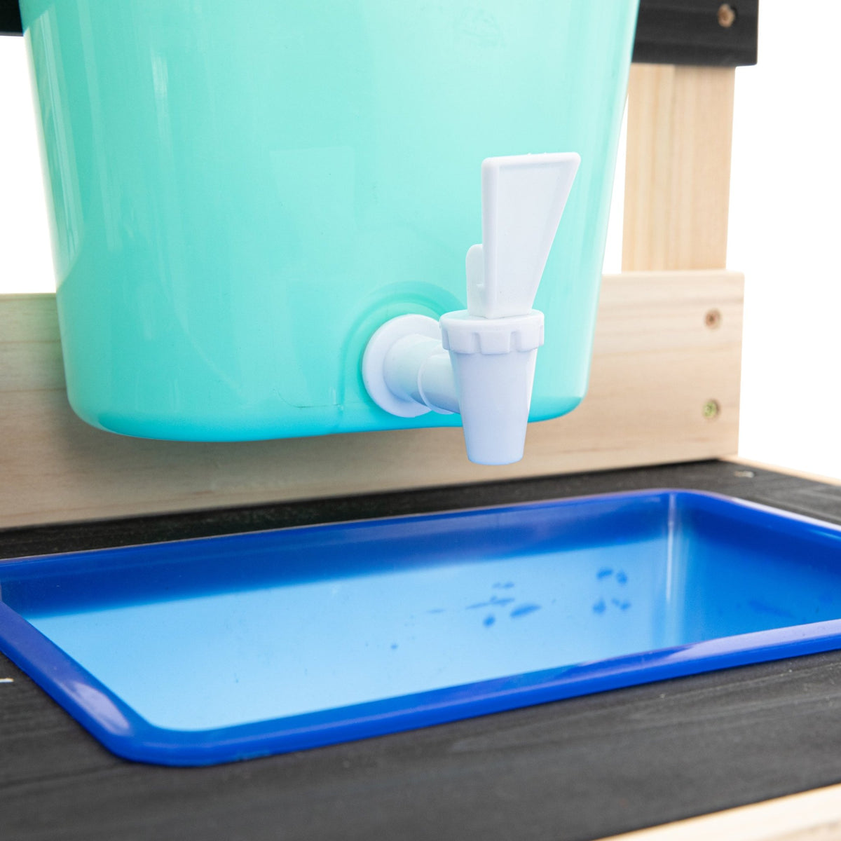 - Extra play features! The ultimate mud kitchen featuring 'hobs', storage shelf, accessories, working tap & a removable splash tub.