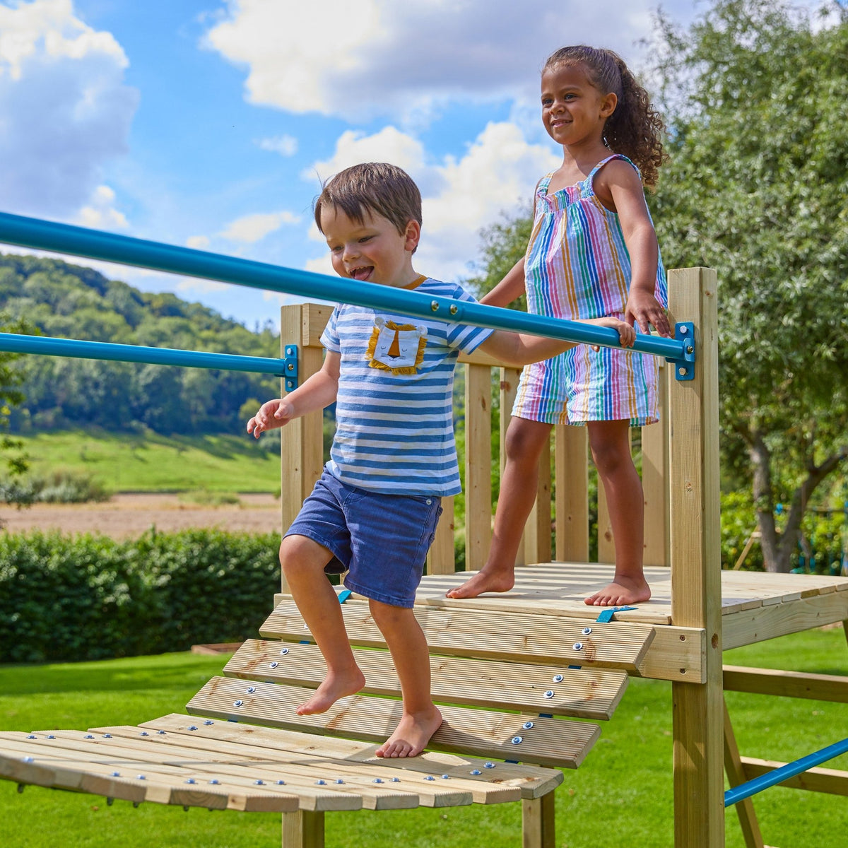 TP Skywood Wooden Tower Climbing Frame with Super Wavy Slide, Sky Deck, Monkey Bars, Skyline with Swing Seat & extra play tower - FSC® certified