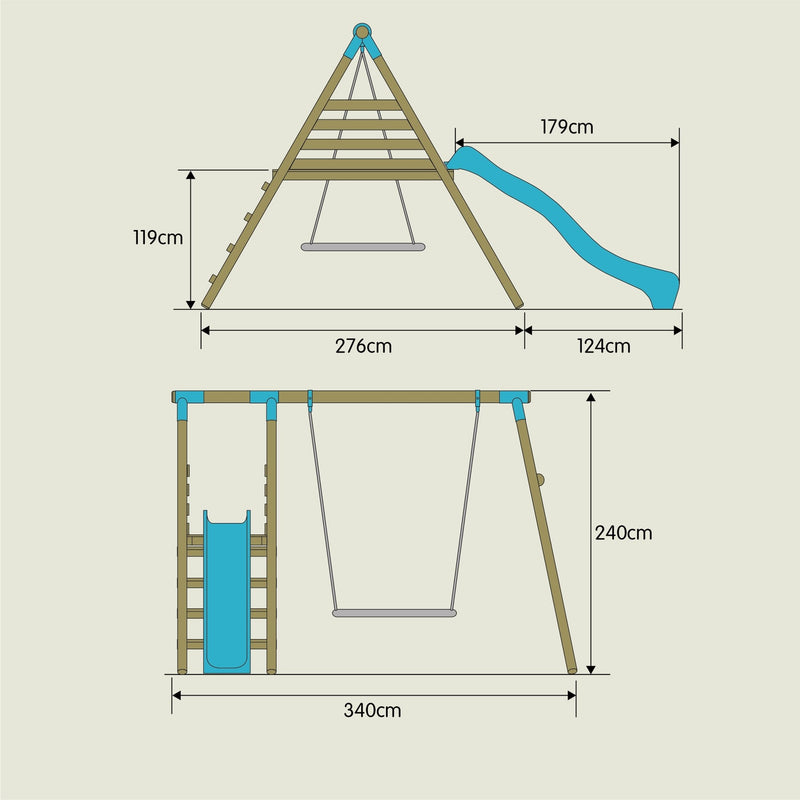 - Swing frame is complete with a climb up deck with 8ft Slide exit for more fun.