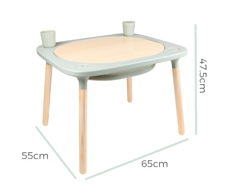 Made from sustainably sourced pinewood, this durable toddler activity table features a non-toxic, water-resistant finish for safe, everyday play. Its Montessori-inspired design encourages creativity, sensory play, and independence, while natural wood and sage green accents complement modern homes.