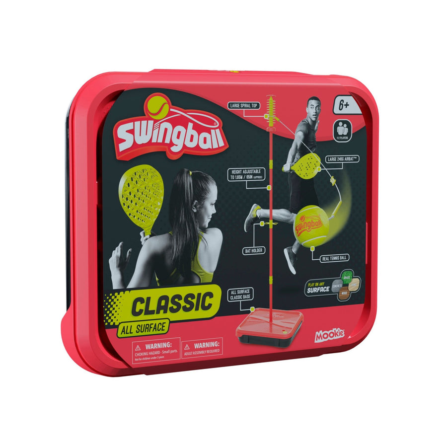 The Classic All Surface Swingball has been a hit with families for generations, compete to get the ball to the top or bottom of the spiral to win. The Classic All Surface Swingball comes with a real tennis ball, 2 championship bats, and a height adjustable pole (up to 1.65m tall!).