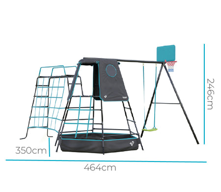 Explorer Metal Climbing Frame Black Edition, Ripple Slide, Swing Arm, Monkey Bridge & Basketball Hoop