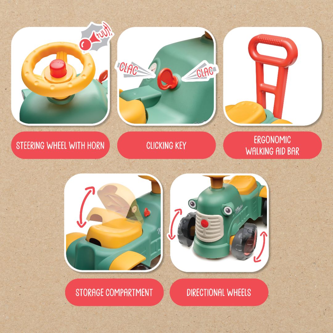 - Features Walking Aid Bar to help children learn to walk