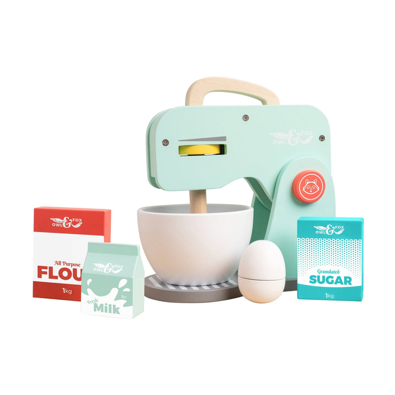 The Owl & Fox range has been designed and developed to inspire confidence and independent play from an early age. Enhancing gross motor skills development and cognitive growth. This childrens wooden baking set will stimulate learning in your child through creative play & experimentation.