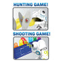 - Plays two games: go hunt and aim & shoot!