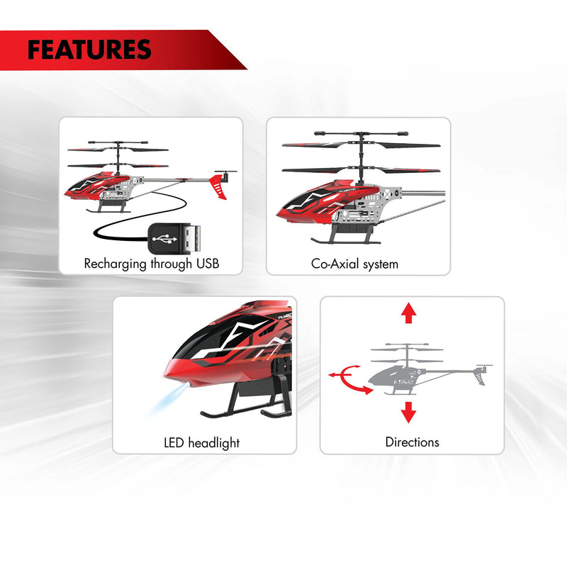 Take to the skies with this 3-channel helicopter, perfect for outdoor use it is supported by 2.4Ghz control to guide you through any mission. As the sun goes down switch on the LED lights for night mode flying.