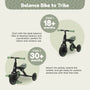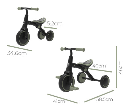 • 2 in 1 design lets the balance bike transition to a 3 wheeled trike