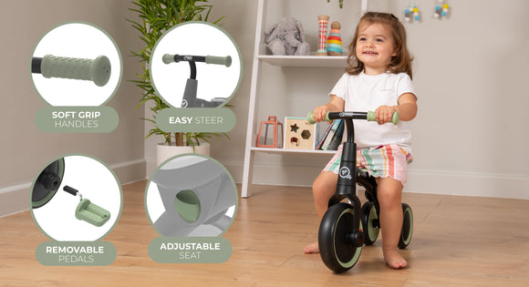 Say hello to the Zoomee Balance Bike to Trike, a dynamic ride-on companion that evolves with your child's journey of growth and exploration. In the calming Forest Green shade, this 2-in-1 wonder is designed for children aged 18 months and above, promising hours of outdoor and indoor excitement.