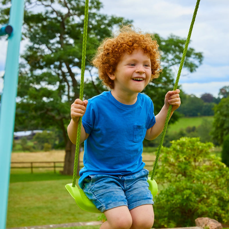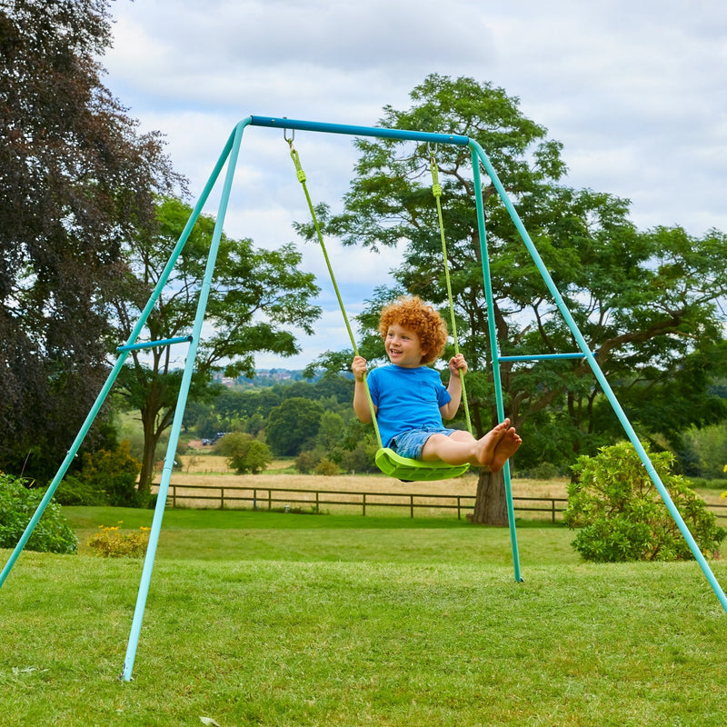 Introducing the TP Single Metal Swing Set, guaranteed to put big smiles on your little one's faces. Designed with the solo adventurer in mind, this metal swing set offers a world of endless excitement. The green braided rope swing seat offers a comfortable grip for little ones, whilst the powder-coated legs gives a sturdy frame with a sleek finish. Transform your garden space breaking the bank. The TP Single Metal Swing Set is the ticket to affordable top-tier fun!