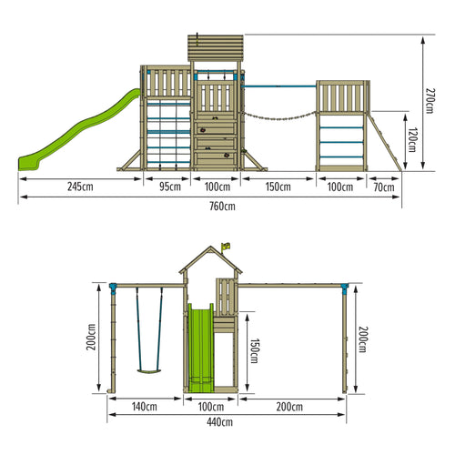- More ways to play! Comes with our best selling 10ft Superwavy slide, our amazing Skyline with Rapide swing, the fun, challenging Monkey Bars, our brand new Sky Deck & an additional play tower!