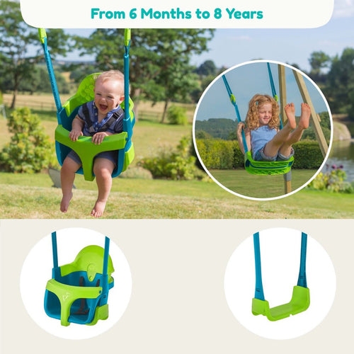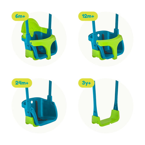 The 2 in 1 grow with me swing is built with both fun and safety in mind. Crafted from durable materials and finished in bright, child-friendly colours, this clever swing adapts as your little one grows. With adjustable settings and a secure design, it’s more than just playtime – it’s a product that evolves with your family. This grow with me swing set comes complete with our best selling 4 in 1 Quadpod swing seat meaning your child can use this swing set from 6 months old all the way up to 6 years +!