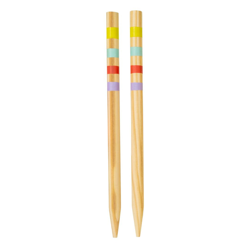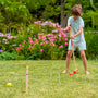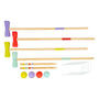 The set includes everything needed for a fun game of croquet: four perfectly sized mallets, four matching balls, eight metal hoops, and two winning posts to complete the course.