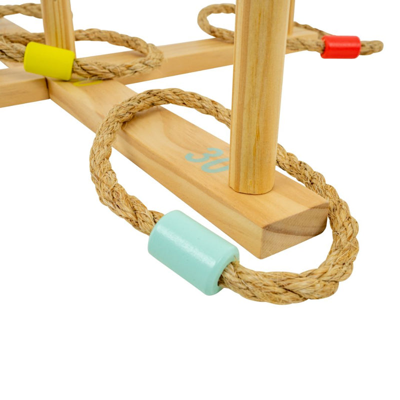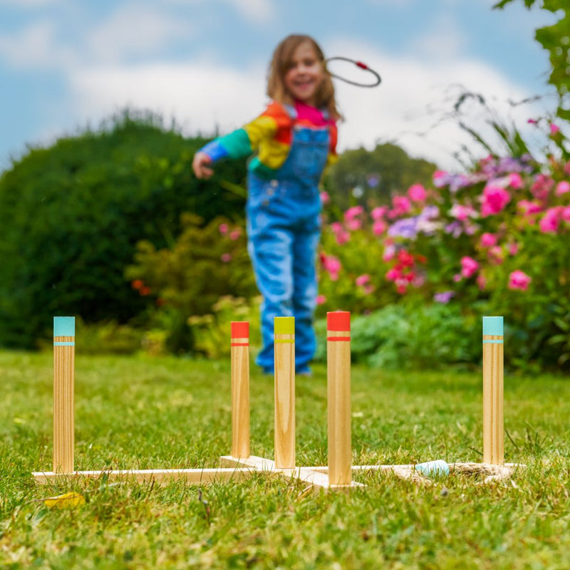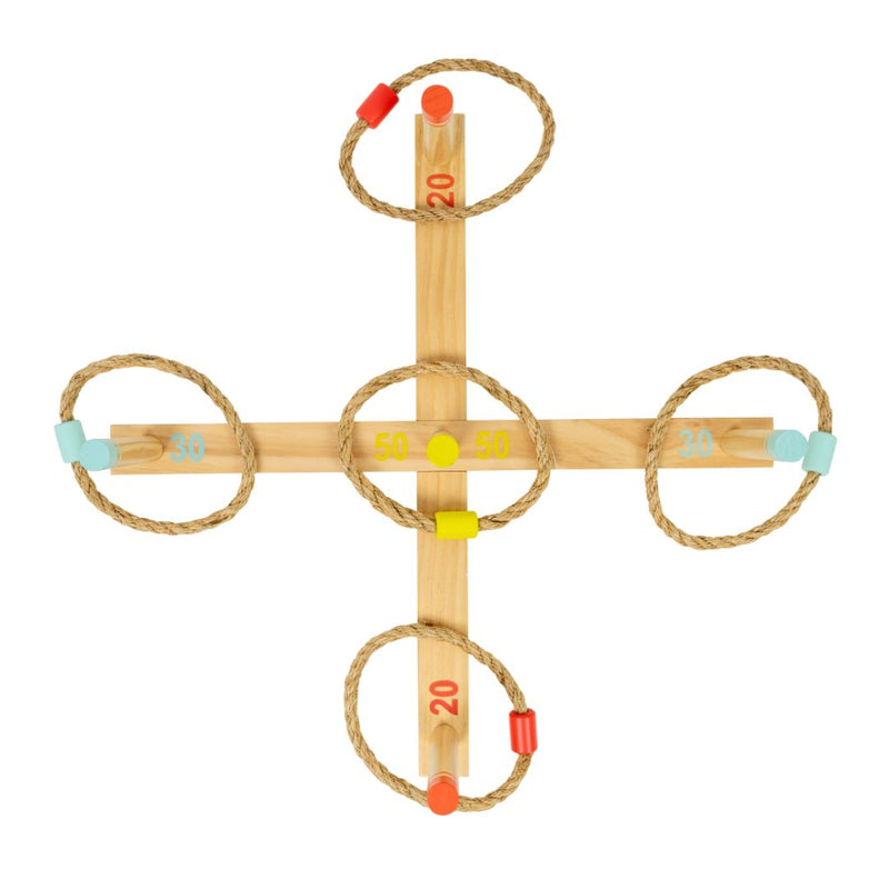Bring the excitement of classic fairground games to your home with this Wooden Ring Toss Game, a delightful activity that everyone in the family can enjoy, indoors or outdoors. The game includes sturdy numbered wooden pegs made from FSC certified wood, and five colour matching rope rings. To play, simply aim and toss the rings over the coloured pegs to score points, the player with the highest score wins! Designed for easy setup and storage, it’s perfect for when friends and family gather.