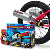 Turbospoke Not only makes a bicycle look like a real motorbike, but it also converts plain old pedal power into realistic engine Noises. Using durable plastic Motocards and a realistic megaphone exhaust pipe, the Bicycle Exhaust System totally revolutionises the "card in the spokes" concept. The Bicycle Exhaust System can Now be fitted to either side of the bike, making a greater range of sounds, cooler and stronger big bore exhaust pipe and fits to 100% of bikes (from 14”-24”)! It’s waterproof and doesn’t require any batteries. It comes with a full fitting kit and 24 awesome stickers to decorate your exhaust pipe.